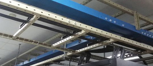 例:強(qiáng)電用白灰色彩鋼橋架;消防用紅色彩鋼橋架;弱電用天藍(lán)色、橙色、檸檬黃和綠色彩鋼橋架;常規(guī)防火橋架用中灰色。不同的電線...